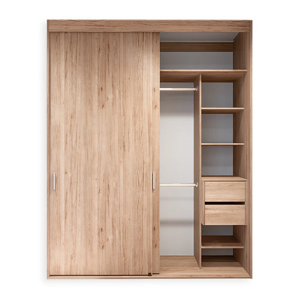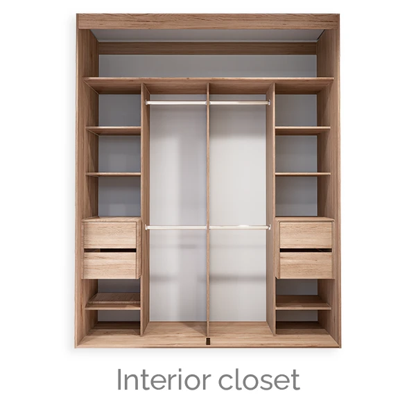 - Closet a medida de piso a techo en melamina de 180 cm de ancho con 4 cajones de cierre lento.